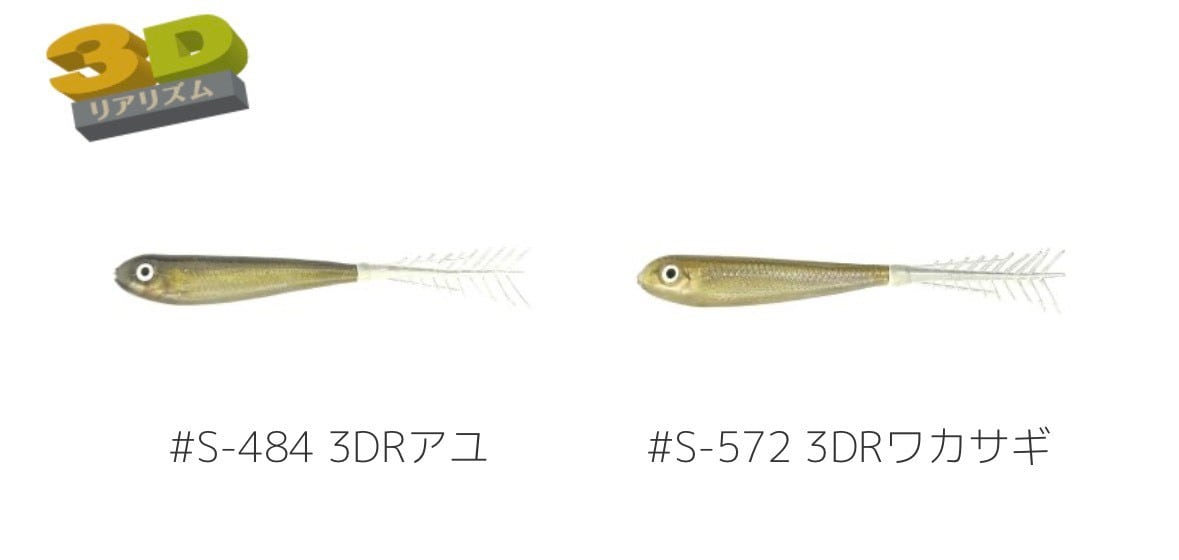 テール部分は超絶繊細金型で成型した、止めていても常にどこかが自然に動く見切られにくいLIVE骨テールを採用。口先部分を肉厚に成型したことで、中空ワームとは思えない飛距離を手に入れたばかりか、空気質に影響しないフックの刺しシロを確保しました。あえてエラストマー全盛期に放つワーム素材の小さな刺客、それが山岡計文デザインのレインボーチューブです。